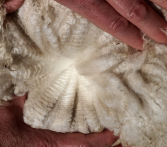 2024 • AFD: 18.0 | SD: 4.4 | CV: 24.2 | %30: 0.6 | Curve: 43.5 dg/mm | Staple: 90mm | Total Clip Weight: 7.2lbs (Art of Fibre) *Total clip is measured in pre- and post-shearing weight. Unskirted Blanket Clip is measured by weighing unskirted, prime fleece pulled from animal.